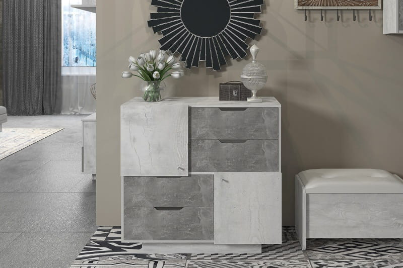 Особенности комода: Контрастное цветовое исполнение. Вместительные ниши под предметы.